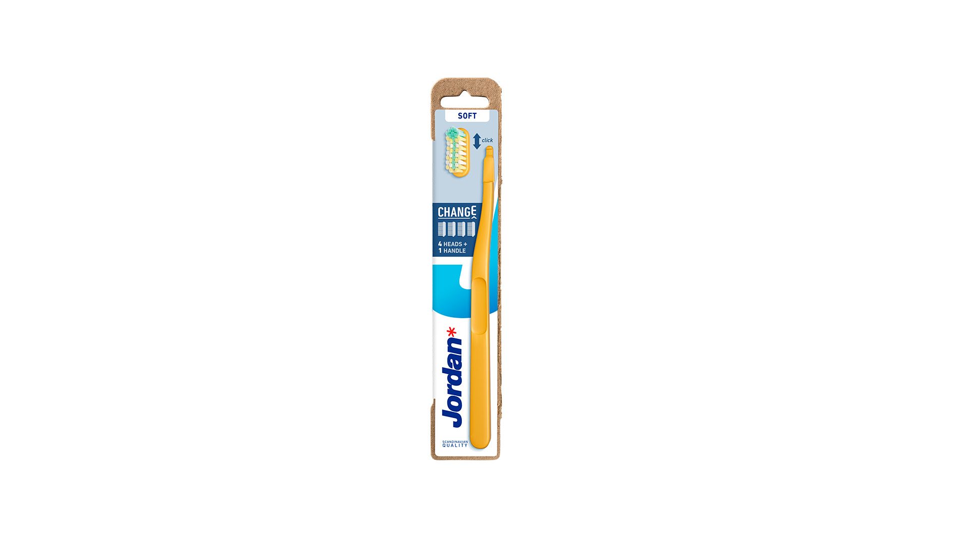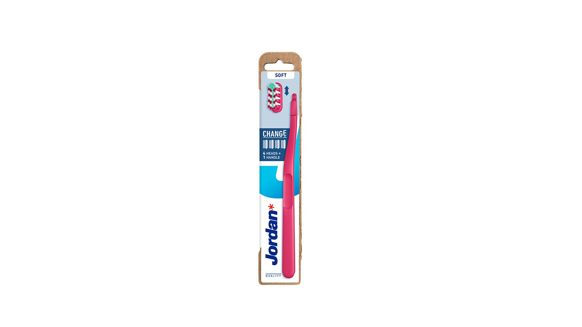 CHANGE tandbørsten fra Jordan Oral Care kombinerer ydeevne og ansvarlighed. Med et håndtag fremstillet af genanvendt plast, viser denne tandbørste, hvordan små ændringer kan skabe store resultater. Tandbørsten er designet med udskiftelige hoveder, hvilket betyder, at du kun behøver at udskifte børstehovedet i stedet for hele tandbørsten. Dette reducerer plastaffaldet med 82% og gør det nemt at opretholde en konsekvent og effektiv tandplejerutine. Produktets håndtag er ergonomisk udformet, hvilket sikrer et behageligt og stabilt greb under tandbørstning.