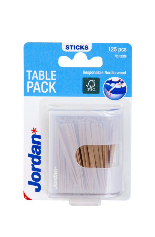 Jordan tandstikker Bordpakning har en trekantprofil som er anatomisk tilpasset tandmellemrummet og den glider derfor let mellem tænderne. Husk at fugte tandstikken i munden før brug, da det gør den stærkere og mindsker risikoen for at den knækker. I fugtet tilstand vil tandstikkeren også tilpasse sig tandmellemrummet.