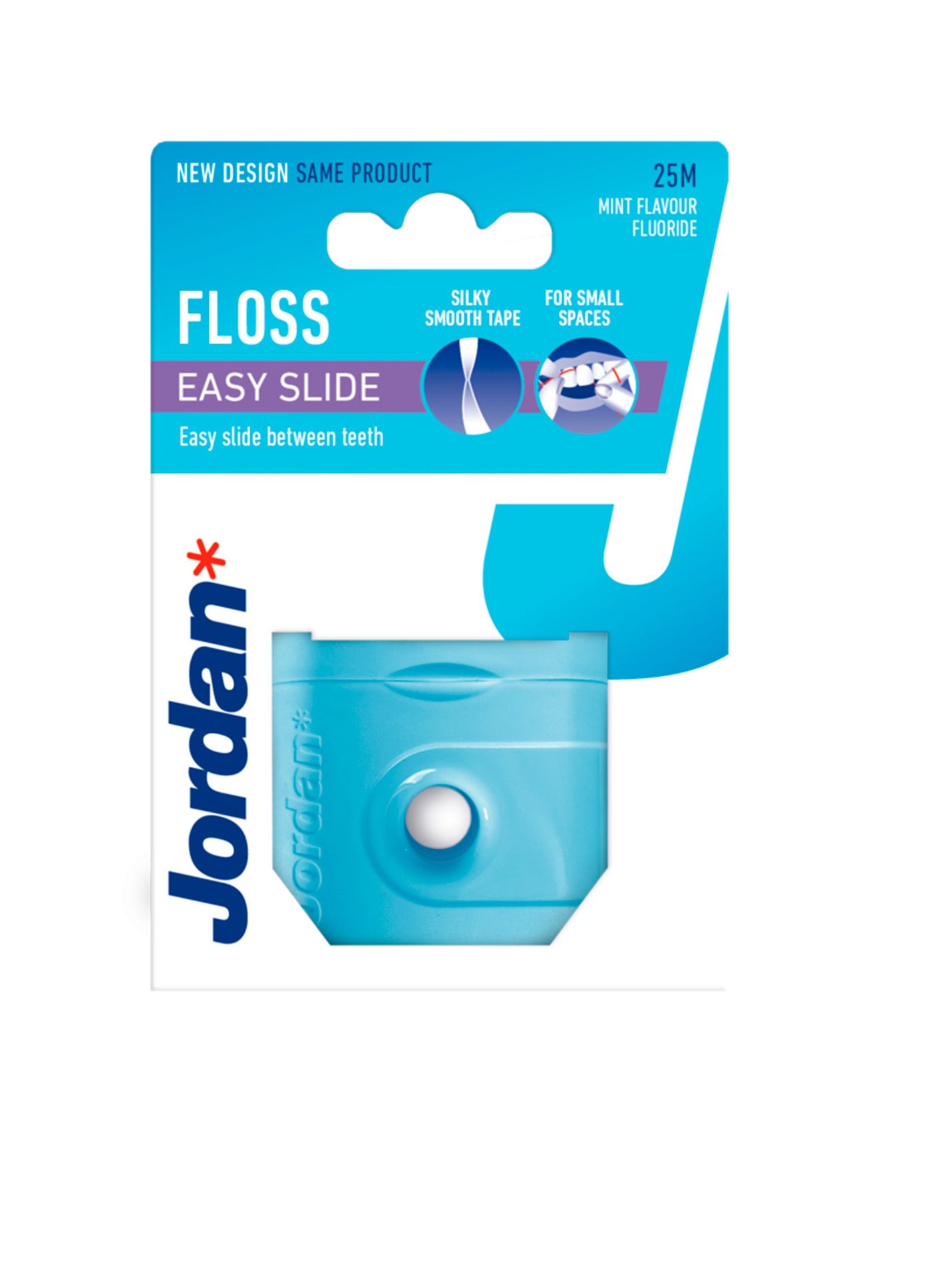 Jordan Easy Slide tandtråd er et stærkt monofilament, PFAS fri og en tandtråd der er ikke-trevlende. Den er belagt med en ikke-klæbende voks, hvilket gør, at den glider let mellem smalle tandmellemrum og under tandkødslinjen. Tandtråden er derudover belagt med myntesmag og fluor.