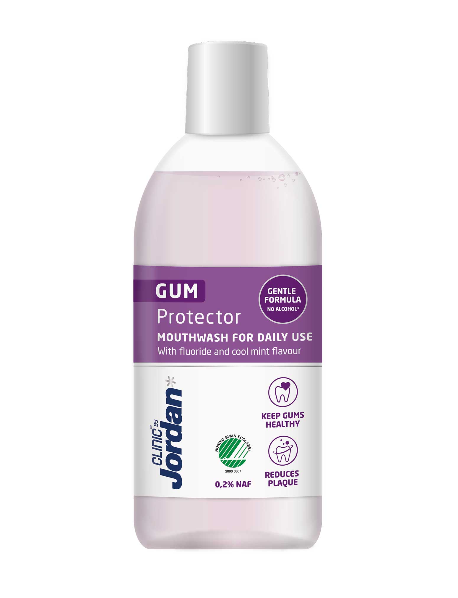 Jordan Clinic Gum Protector suuvesi on spetsiaalselt välja töötatud tervete igemete säilitamiseks. Suuvesi on mõeldud igapäevaseks kasutamiseks ning sisaldab allantoiini ja provitamiini B5, mis aitavad kaasa tundlike igemete leevendamisele*. Õrn koostis ilma alkoholita (ilma etanoolita) ja kaariese kaitseks kõrge fluoriidisisaldusega 0,2% NaF. Värske piparmündi maitse.