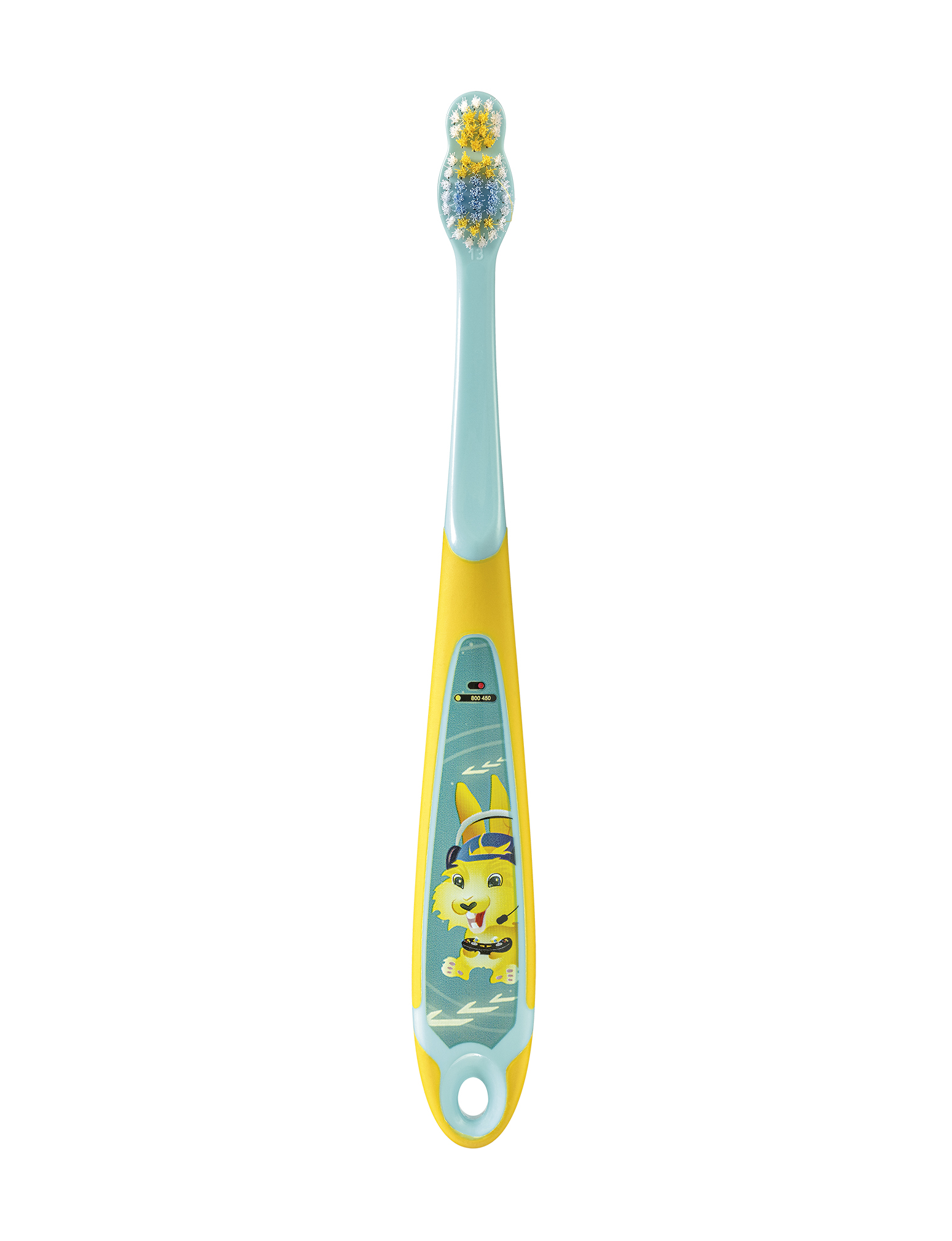 El cepillo de dientes Step 3 de Jordan está hecho a medida para cepillar los dos tipos de dientes que tienen los niños de 6 a 9 años, los de leche y los permanentes. Está diseñado con cerdas suaves y una punta especial, con cerdas de forma piramidal, que resultan perfectas para limpiar las distintas formas y medidas que tienen los dientes de los niños a esta edad. El mango es cómodo para niños y padres.
