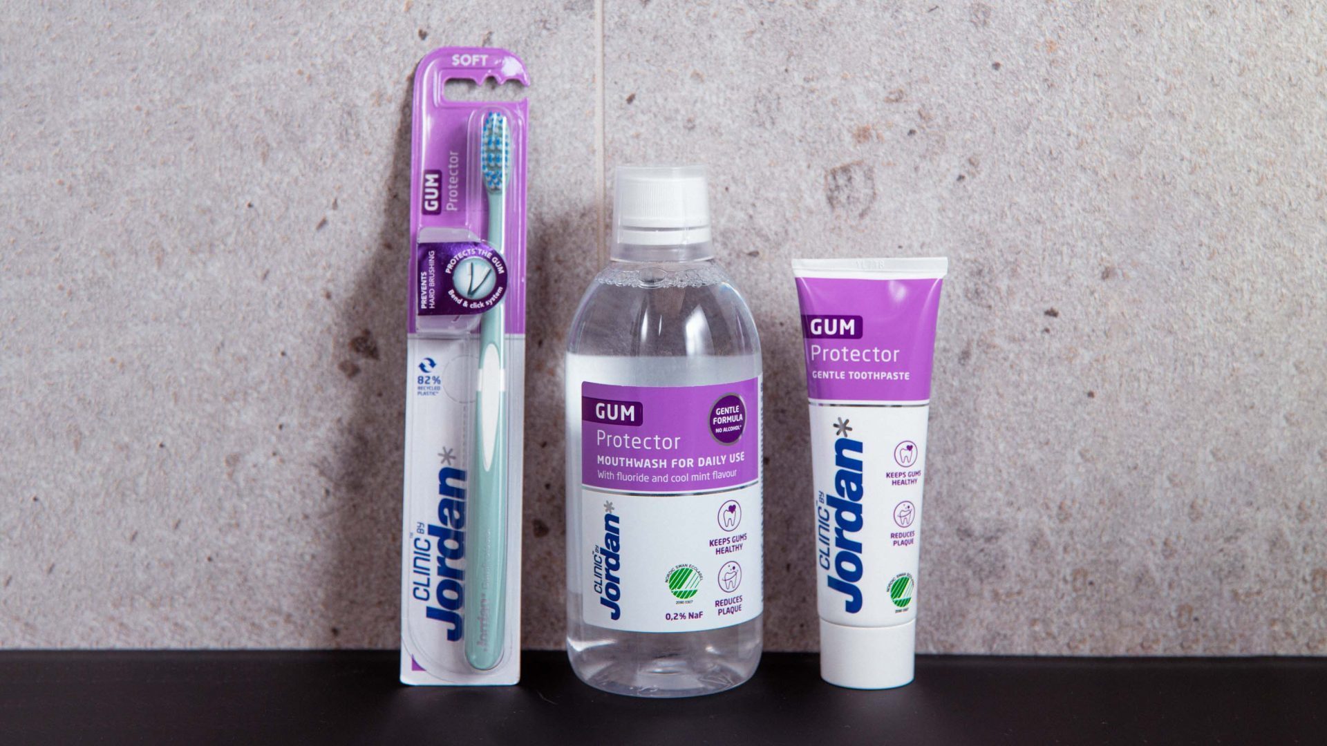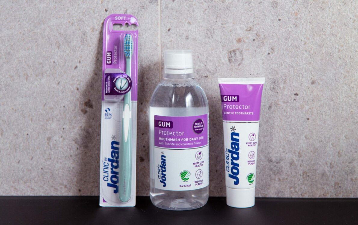 Jordan by Clinic „Gum Protector“ - produktų serija sukurta žmonėms, kurių dantenos jautrios, paraudusios ar kraujuojančios. Dantų pasta sertifikuota Nordic Swan Eco-label.