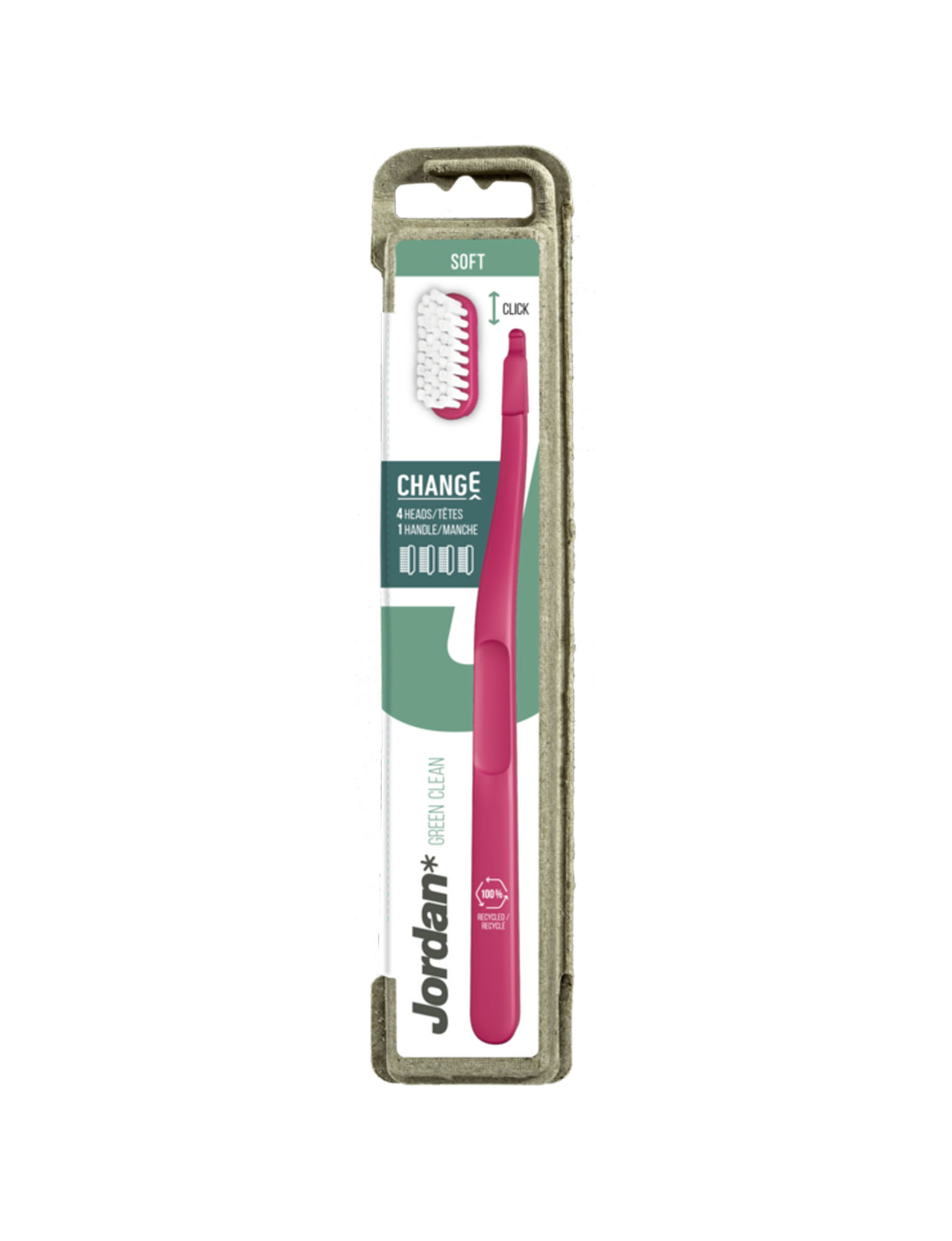 Dingen veranderen niet, tenzij we ze veranderen! Dus waarom de hele tandenborstel weggooien, als alleen de borstelharen slijten? Green Clean Change heeft een handvat gemaakt van 100% gerecycled plastic en biobased borstelharen. Hij heeft zowel het uiterlijk als het gemak van onze bekroonde tandenborstel Green Clean, maar is nu nog beter voor de planeet. Elke keer dat je de kop verwisselt, bespaar je 82% plastic afval.