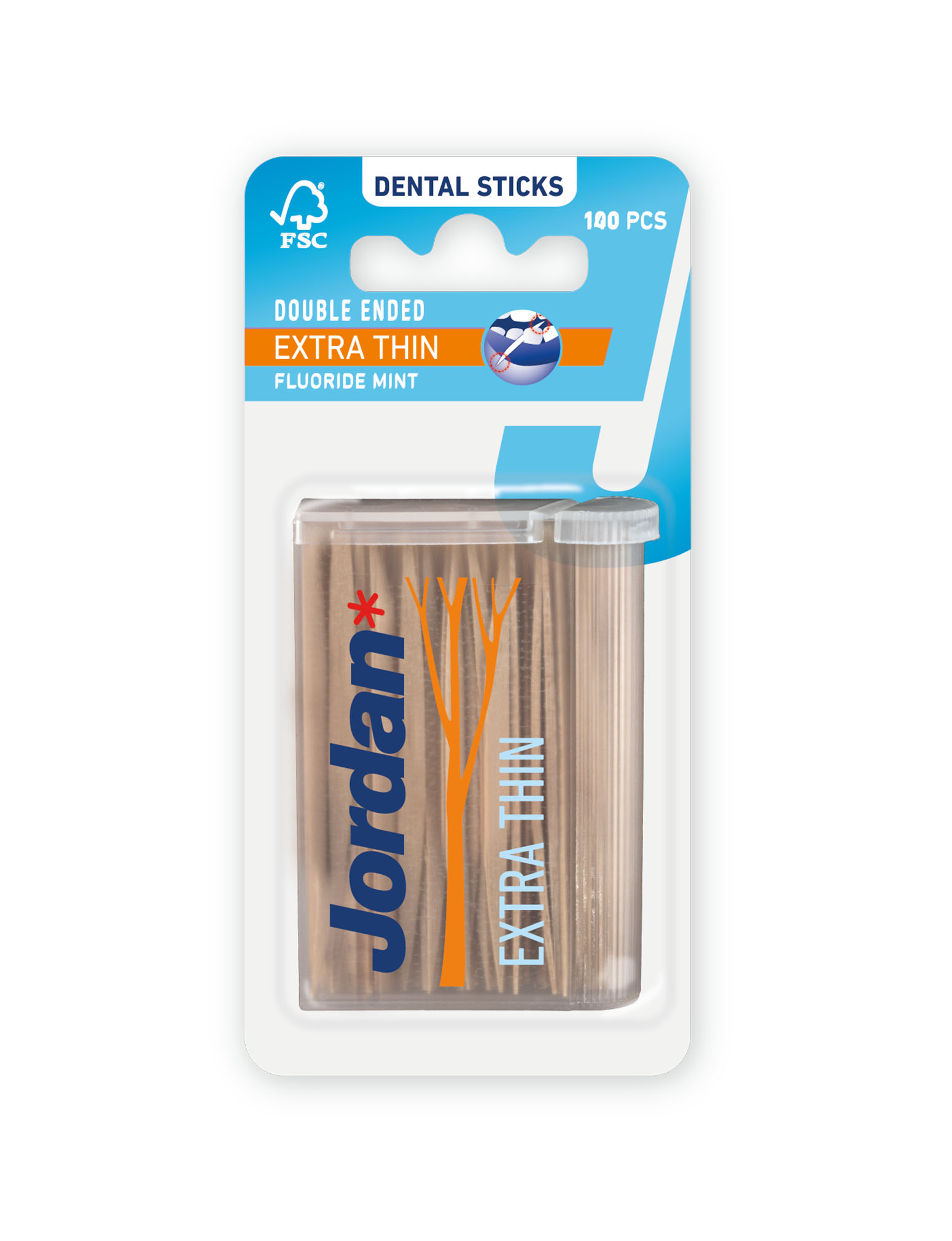 De Jordan Tandenstokers Extra Dun zijn extra dunne tandenstokers en ideaal voor mensen met weinig ruimte tussen hun tanden. Deze dubbelzijdige tandenstokers met mintsmaak bevatten ook fluoride. Vergeet niet de tandenstoker eerst te bevochtigen in de mond voor gebruik, aangezien de tandenstoker dan minder snel zal breken. De tandenstokers zullen zich dan óók beter aanpassen aan de ruimte tussen de tanden. De tandenstoker is gemaakt van berkenhout, is geslepen aan beide uiteinden en heeft een driehoekige vorm die gemakkelijk glijdt tussen de tanden.