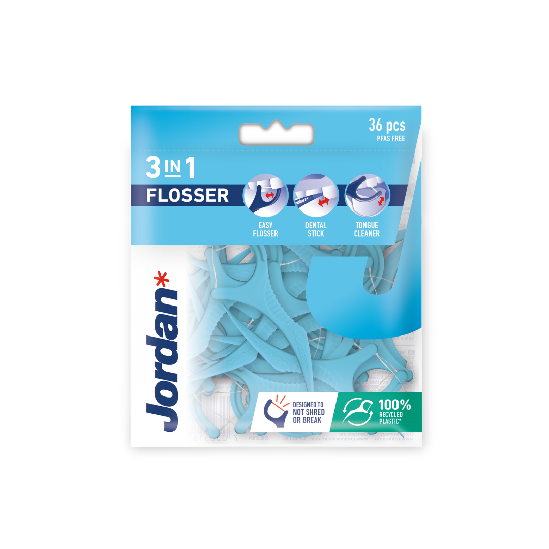 Jordan 3-in-1 Flosser er en engangstanntråd som gjør det enkelt å få et vakkert smil.