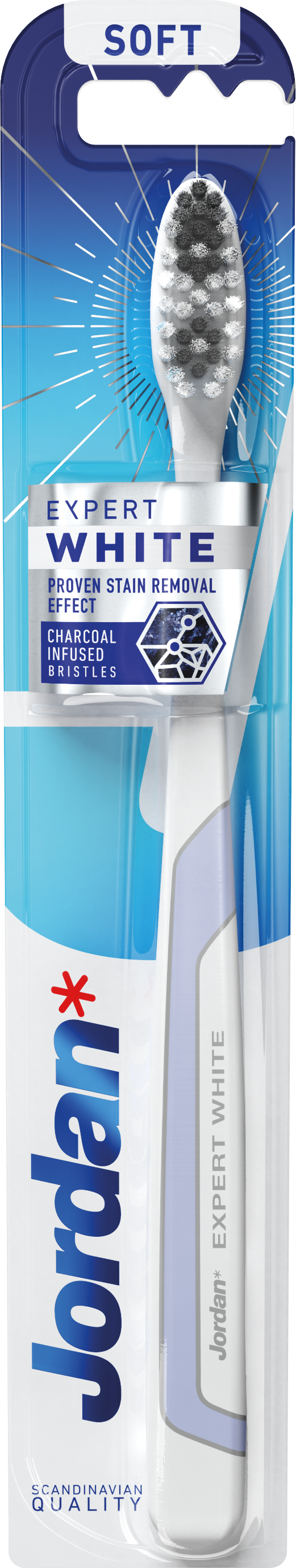 Jordan Expert White is a high-quality whitening toothbrush with proven stain removal effect and charcoal infused bristles. It features an active tip, spiral bristles and rubber coated bristles as well for an effective stain removal.