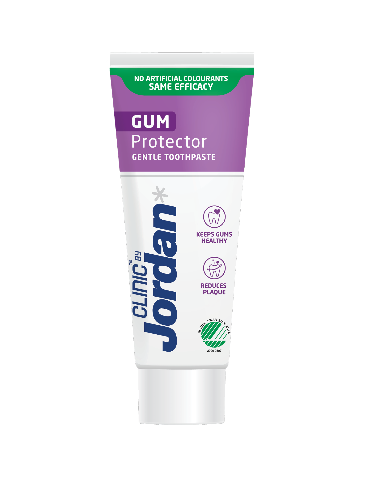 Pasta do zębów Jordan Gum Protector została stworzona z myślą o konsumentach, którzy chcą utrzymać dziąsła w dobrej kondycji. Pasta do zębów zawiera alantoinę i prowitaminę B5 (pantenol), które przyczyniają się do zmniejszenia wrażliwości dziąseł*. Fluorek sodu i ksylitol chronią zęby przed próchnicą i zmniejszają płytkę nazębną.